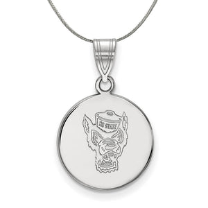 If you are a fan of North Carolina State University and the Wolfpack then you need to show your school spirit with this North Carolina State University necklace. We are a certified college jewelry retailer and this authentic item is officially licensed. It is crafted from Sterling Silver and crafted by LogoArt in the USA. Includes an 18 Inch, 1.25mm sterling silver franco chain.