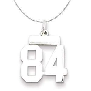 Celebrate your favorite sports player, lucky number or milestone date in your life with a prominent rhodium-plated sterling silver charm. Each polished number is approximately 13mm (1/2 Inch) in length, which is finished with a 2mm top bar and a classic jump ring that will accommodate up to a 3mm chain. Includes a 24 inch, 1.25mm sterling silver cable chain with a lobster clasp closure.