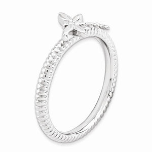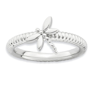 Fun and whimsical, appealing to all ages and can be worn alone or featured in a collection. This 2. Mm rhodium plated sterling silver band features a fluted design and a 10mm polished dragonfly. Guaranteed to fit together perfectly with all of the mix and match Stackable Expressions rings. This item is backordered. Please allow 7-10 business days for delivery