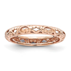 Make it simple and stylish with stackable bands of different textures, finishes, widths and colors! This rose gold tone plated sterling silver band features a domed carved heart design with a polished finish that measures 3. Mm wide. Guaranteed to fit together perfectly with all of the mix and match Stackable Expressions rings.