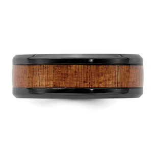 Black Zirconium is a metal element similar to titanium. It is durable, scratch-resistant, and the color will never fade. Zirconium is lightweight, shatterproof, and can be personalized with engraving. This 8mm width polished band features a standard fit shank, a sapele wood inlay center, beveled edges, and because it is also hypoallergenic, it is perfect for those with sensitive skin. Please allow for natural variations in wood color and grain. Available in whole and half sizes 8-13.