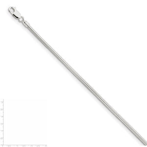 A series of round wavy rings joined side-by-side forms a smooth flexible tube for this 2.5mm chain that closes with a lobster-claw clasp. It features a solid, sterling silver construction with a gleaming, polished finish. 8 inches in length. Made in Italy.