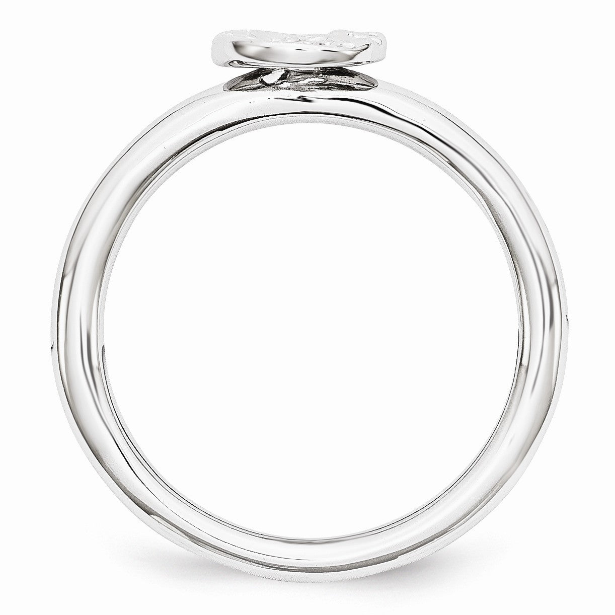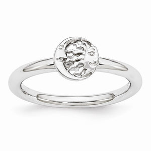 Illuminate your style with this celestial duo stackable ring fashioned from tarnish resistant rhodium plated sterling silver. It features a polished 7mm open sun and moon charm atop a 2.5mm width band. Wear it alone or in meaningful combinations, guaranteed to fit together perfectly with all of the mix and match Stackable Expressions rings.