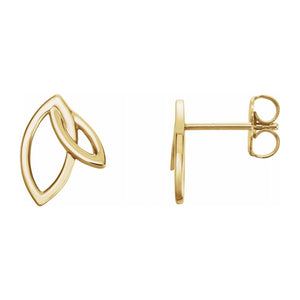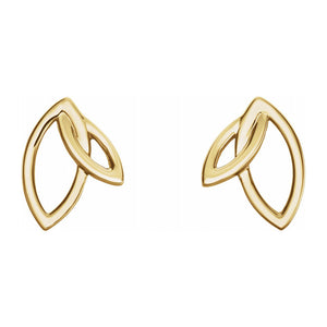14K White, Yellow or Rose Gold Double Leaf Post Earrings, 8.5 x 11.5mm