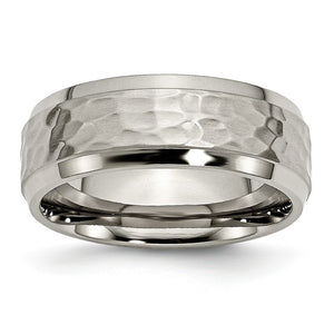Titanium 8mm Beveled Edge Hammered Comfort Fit Band