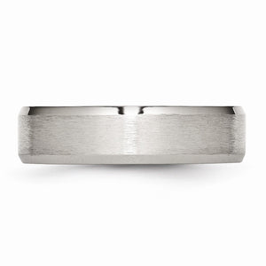 Titanium's beautiful lustrous color combined with its versatile properties makes it a superb choice for those who want a ring that will endure the test of time. This 6mm comfort fit band features a flat brushed center with polished beveled edges.