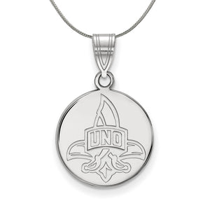 If you are a fan of The University of New Orleans and the Privateers then you need to show your school spirit with this University of New Orleans necklace. We are a certified college jewelry retailer and this authentic item is officially licensed. It is crafted from Sterling Silver and crafted by LogoArt in the USA. Includes a 16 Inch, 1.25mm sterling silver franco chain.