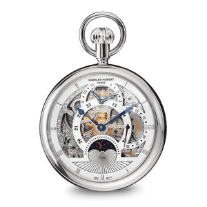 Since 1990, Charles-Hubert Paris has established a large and loyal following by watch lovers across the globe. They are known for their exceptional quality standards, affordable pricing and unique designs. This Charles Hubert stainless steel open face skeleton dual time pocket watch features a mechanical (hand-wind) movement and has a white dial color. The case is 52 x 52 mm in size and includes a lifetime warranty.