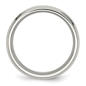 Earthy masculine style featuring a polished stainless steel flat beveled edge design inlaid with black Koa wood and clear enamel. Please allow for natural variances in wood color and grain pattern. Comfort fit shank. Suitable for engraving.