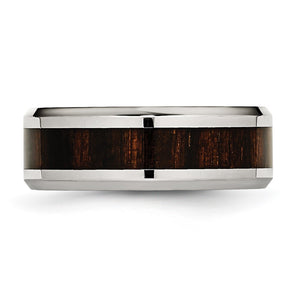 Men's 8mm Stainless Steel Blk Koa Wood Enamel Beveled Comfort Fit Band