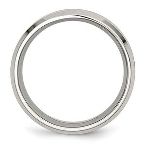 Earthy masculine style featuring a polished stainless steel flat beveled edge design inlaid with red Koa wood and clear enamel. Please allow for natural variances in wood color and grain pattern. Comfort fit shank. Suitable for engraving.