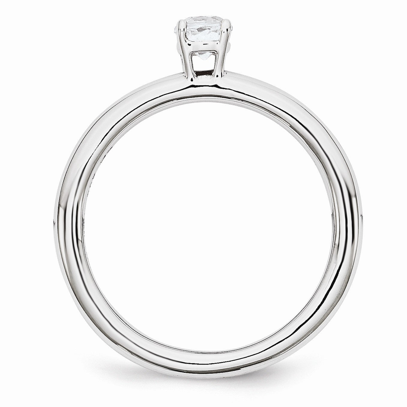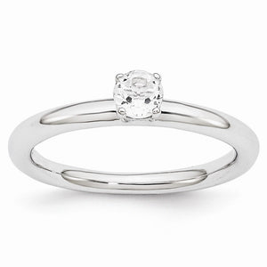 White Topaz, April's birthstone is known as the stone of power, healing and protection; increasing awareness of thoughts and deeds. This 2.5mm band fashioned from rhodium-plated sterling silver is prong set with a 4mm round 0.-carat genuine gemstone that will add sparkle and shine to your finger. Guaranteed to fit together perfectly with all of the mix and match Stackable Expressions rings.