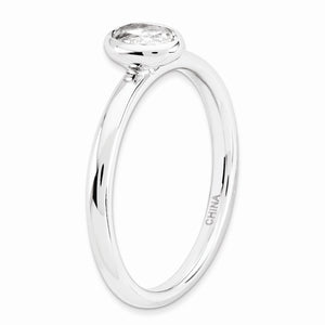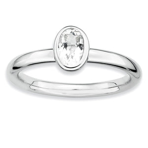 White Topaz, April's birthstone is known as the stone of power, healing and protection; increasing awareness of thoughts and deeds. This 2.5mm polished band fashioned from rhodium plated sterling silver is bezel set with a faceted gemstone that will add sparkle and shine to your finger. Guaranteed to fit together perfectly with all of the mix and match Stackable Expressions rings.