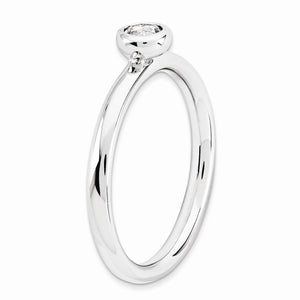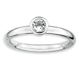 White Topaz, April's birthstone is known as the stone of power, healing and protection; increasing awareness of thoughts and deeds. This 2.5mm band fashioned from rhodium plated sterling silver is bezel set in a low profile mounting with a 4mm round gemstone that will add sparkle and shine to your finger. Guaranteed to fit together perfectly with all of the mix and match Stackable Expressions rings.