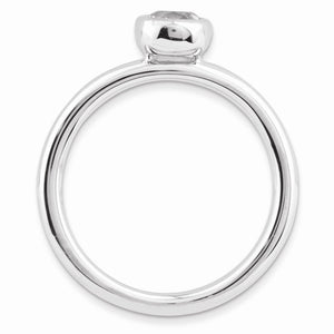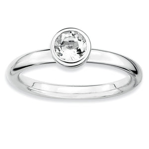 White Topaz, April's birthstone is known as the stone of power, healing and protection; increasing awareness of thoughts and deeds. This 2.5mm band fashioned from rhodium plated sterling silver is bezel set in a low profile mounting with a 5mm round gemstone that will add sparkle and shine to your finger. Guaranteed to fit together perfectly with all of the mix and match Stackable Expressions rings.