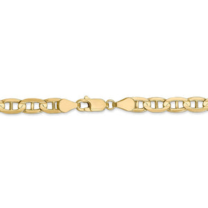 A nautical style design crafted to resemble the cable used to anchor ships, also known as the mariner chain, creates a simple innovative styled bracelet. This 5.25mm width, 9-inch long 14k yellow gold chain features a solid link construction, a polished finish and a lobster-claw clasp that provides a secure, worry-free fit.