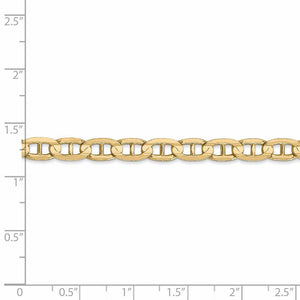 A nautical style design crafted to resemble the cable used to anchor ships, also known as the mariner chain, creates a simple innovative styled bracelet. This 5.25mm width, 7-inch long 14k yellow gold chain features a solid link construction, a polished finish and a lobster-claw clasp that provides a secure, worry-free fit.