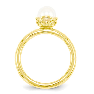 A beautiful 6.-6. Mm white freshwater cultured pearl is prominently set on this 2. Mm sterling silver band finished with 14k yellow gold plating. Guaranteed to fit together perfectly with all of the mix and match Stackable Expressions rings. Due to the nature of pearls, colors may not match what is shown. Gemstone treatment: bleached.