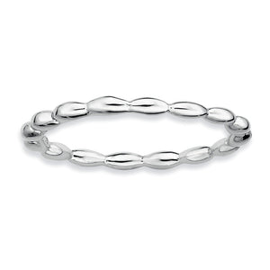 Make it simple and stylish with bands of different textures, finished, widths and colors! This rhodium plated sterling silver band features a rice bead design with a high polished finish that measures 1. Mm wide. Guaranteed to fit together perfectly with all of the mix and match Stackable Expressions rings.