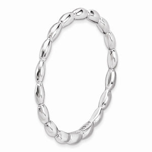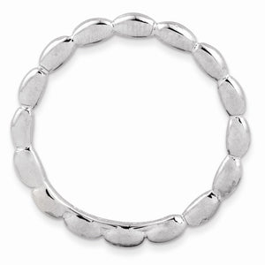 Make it simple and stylish with bands of different textures, finished, widths and colors! This rhodium plated sterling silver band features a rice bead design with a high polished finish that measures 1. Mm wide. Guaranteed to fit together perfectly with all of the mix and match Stackable Expressions rings. This item is backordered. Please allow 7-10 business days for delivery