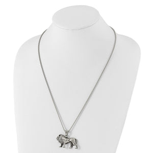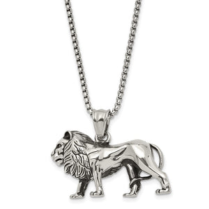 Stainless Steel Antiqued & Polished Lion Necklace, 25.5 Inch
