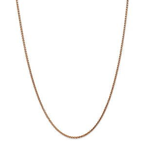 Strands of 14k rose gold are braided and woven together to create a spectacular wheat pattern for this 1.8mm width, 18-inch long necklace chain that closes with a lobster-claw clasp. It features a solid link construction with a sparkling diamond-cut finish.