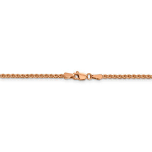 Strands of 14k rose gold are braided and woven together to create a spectacular wheat pattern for this 1.8mm width, 20-inch long necklace chain that closes with a lobster-claw clasp. It features a solid link construction with a sparkling diamond-cut finish.
