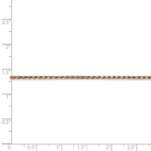 Twisting strands of 14k rose gold form an intricate spiral pattern on this fabulous rope chain accented with a diamond-cut finish. Designed to provide the perfect combination of beauty, strength and integrity, this 1.8mm classic chain is a must have fashion accessory! 7 inches in length.