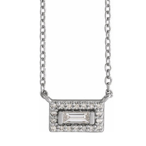 14K White Gold 1/10 CTW Diamond Baguette Halo-Style Necklace - Black Bow Jewelry Company
