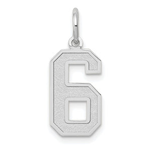 14k White Gold, Jersey Collection, Medium Number 6 Pendant