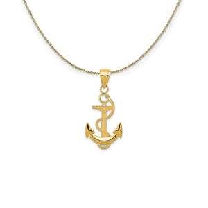 Tie the meaning to the moment with a classic or unusual pendant that makes it personal, thoughtful, or meaningful. This anchor with textured rope pendant crafted in 14k yellow gold features a polished and textured design. The approximate size is 15mm (9/16 inch) in width by 33mm (1 5/16 inch) in length with the bail. Includes a 20 inch long, 0.9mm wide, solid 14k yellow gold cable chain with a spring ring clasp.