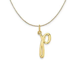 This charming collection of 14k yellow gold lower case initials is the perfect way to personalize jewelry for both the young and young-at-heart. The letter 'p' is approximately 11mm (7/16 Inch) in length and is finished with a classic jump ring. The pendant is . Includes a 30 Inch, 0.8mm 14k yellow gold cable chain with a lobster clasp.