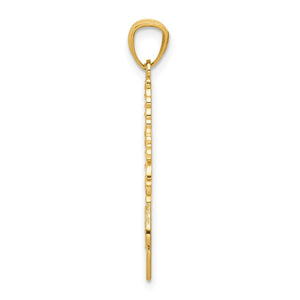 Start conversations wherever you go with a unique charm created to spark interest and reveal your passion for cheerleading. This polished 14k yellow gold pendant features a flat, textured and diamond-cut design that is approximately 15mm (9/16 inch) in width by 28mm (1 1/16 inch) in length, which includes the tapered bail. Made in the U.S.A. Chain not included.