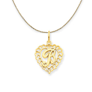 Capture her heart or express your heartfelt thanks with a personalized initial pendant featuring a delicate open motif. Designed from solid 14k yellow gold with a soft luster, satin finish and measures approximately 15mm (9/16 inch) in width by 15mm (9/16 inch) in length. The pendant is . Includes a 20 inch, 0.8mm 14k yellow gold cable chain with a lobster clasp.