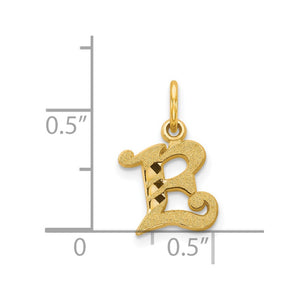 Create a sparkling initial impression with this satin finished 14k yellow gold charm featuring diamond cut accents that twinkle with every movement. Each letter measures approximately 10mm (3/8 Inch) in length and dangles from a classic jump ring that will fit up to a 3mm width chain. Made in the U.S.A. Chain not included.