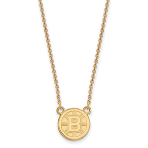 14k Yellow Gold NHL Boston Bruins Small Necklace, 18 Inch - Black Bow Jewelry Company