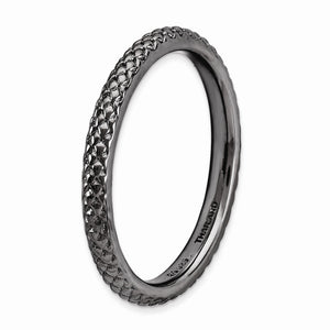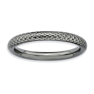 Make it simple and stylish with bands of different textures, finishes, widths and colors! This black ruthenium-plated sterling silver band features a cable design with a high polished finish that measures 2.5mm wide. Guaranteed to fit together perfectly with all of the mix and match Stackable Expressions rings.