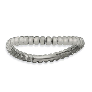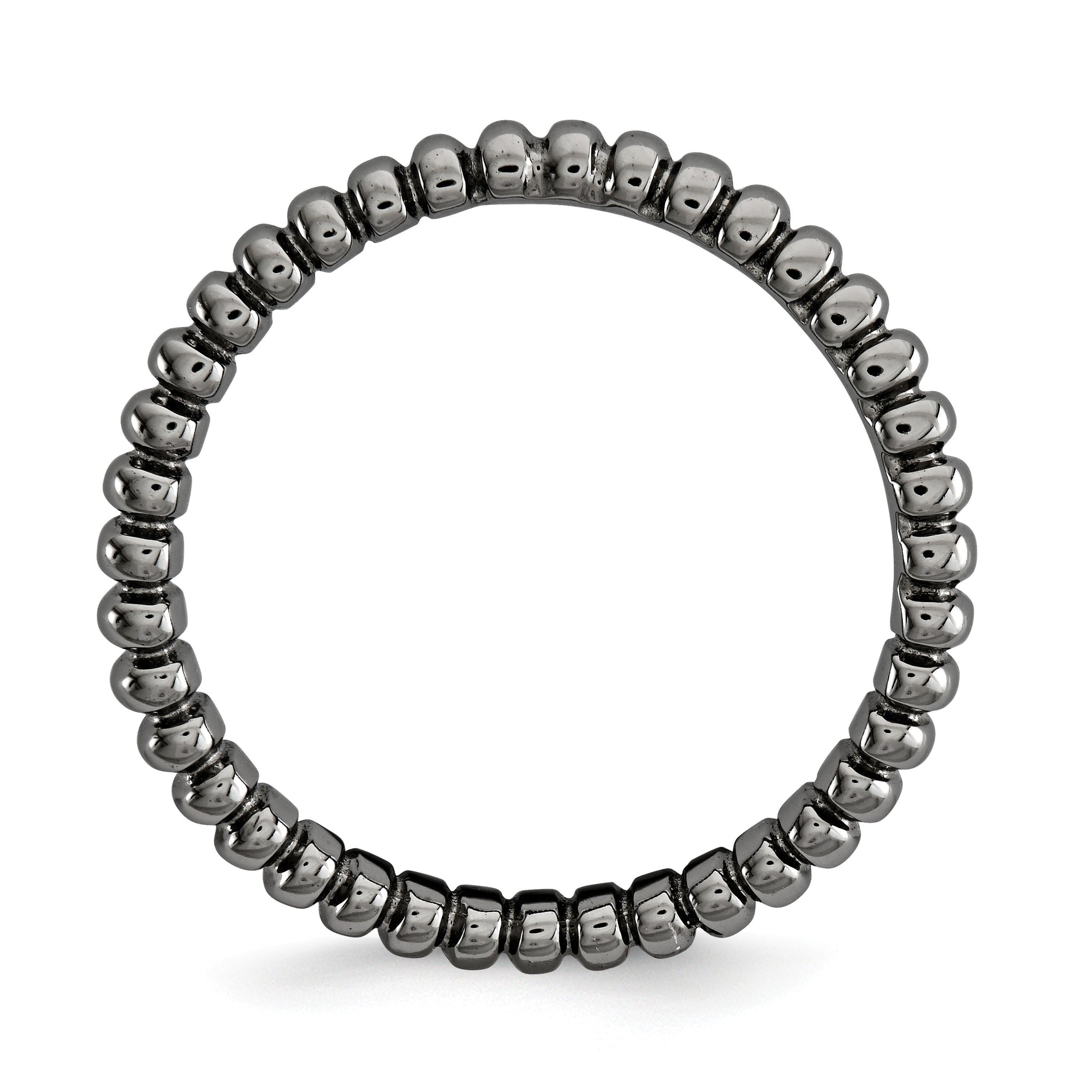 Contemporary geometric style! Create a unique stacked design with curved bands of different colors, patterns and widths. This 2.5mm band fashioned from sterling silver features a polished black ruthenium-plated finish, a gentle wave shape and a beaded pattern. Wear it alone or stack with other curved bands only.