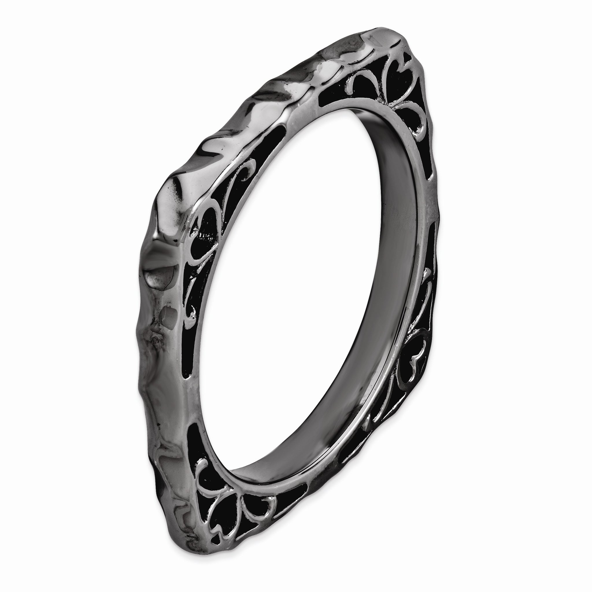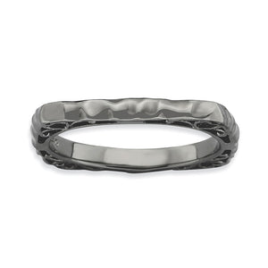 2.25mm Stackable Black Plated Silver Square Hammered Scroll Band