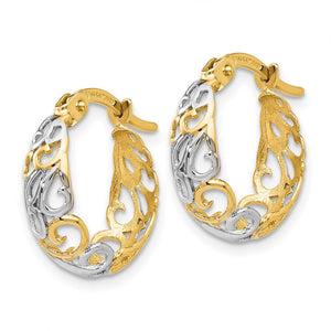 6x16mm (5/8 Inch) 14k Yellow Gold & Rhodium Ornate Tapered Round Hoops