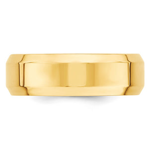 A tried-and-true favorite style featuring a polished beveled edge design created from solid 10k yellow gold. This men's band has a comfort fit shank, is approximately 1.8mm in thickness (standard weight) and 7mm in width. Suitable for engraving.�