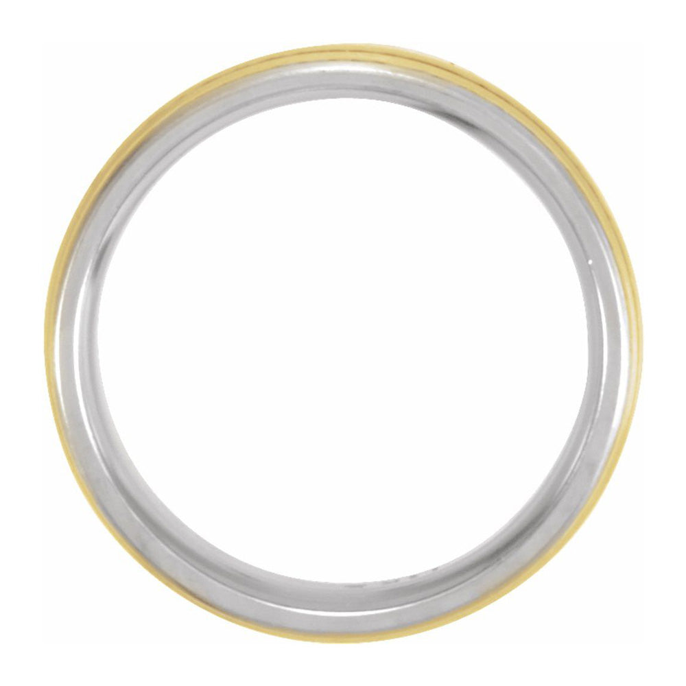 Versatile contrasting style featuring a two-toned, satin and polished grooved design created from 14k white and yellow gold. This comfort fit band is 7mm in width and suitable for engraving.