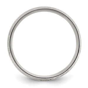 Distinctive style featuring a half-round profile, grooved and crisscross edges and a standard fit interior designed from polished titanium. This 7mm width unisex band is suitable for engraving.�
