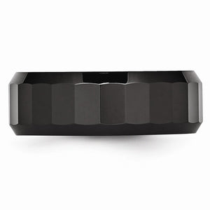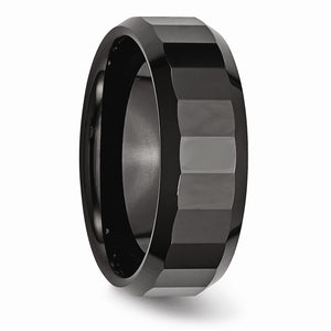 Ceramic is the new, lightweight fashion material that is strong enough to withstand your daily wear and tear and guaranteed to retain its high polish and color. This unisex, faceted band features beveled edges and makes a classy wedding band or fashion accessory. The comfort fit band is 8mm wide and available in whole and half sizes 6-13.