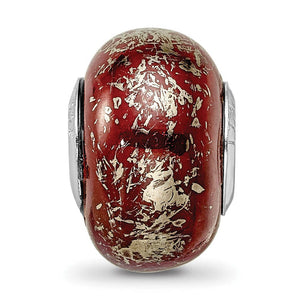 Dark Red w/Platinum Foil Ceramic & Sterling Silver Bead Charm, 14mm