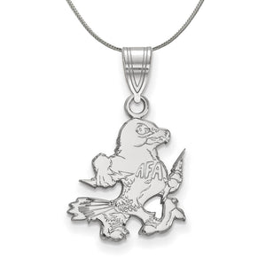 • If you are a fan of United States Air Force Academy and the Fighting Falcons then you need to show your school spirit with this United States Air Force Academy necklace. We are a certified college jewelry retailer and this authentic item is officially licensed. It is crafted from Sterling Silver and crafted by LogoArt in the USA. Includes a 20 Inch, 1.25mm sterling silver franco chain.