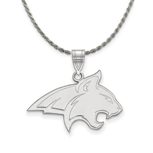 • If you are a fan of Montana State University and the Bobcats then you need to show your school spirit with this Montana State University pendant. We are a certified college jewelry retailer and this authentic item is officially licensed. It is crafted from Sterling Silver and crafted by LogoArt in the USA. Includes a flexible and strong diamond cut rope chain. This stunning chain is 2.25mm in width, 20 inches in length and features a sturdy lobster claw clasp. The chain is crafted in Italy.