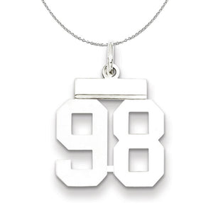 Celebrate your favorite sports player, lucky number or milestone date in your life with a prominent rhodium-plated sterling silver charm. Each polished number is approximately 13mm (1/2 Inch) in length, which is finished with a 2mm top bar and a classic jump ring that will accommodate up to a 3mm chain. Includes a 16 inch, 1.25mm sterling silver chain with a lobster clasp closure.