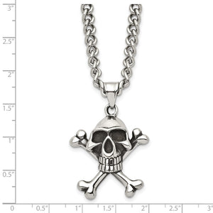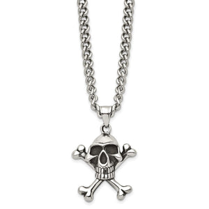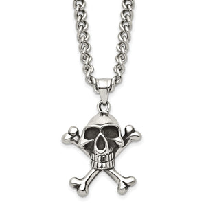 Stainless Steel Antiqued Skull and Crossbones Necklace 24 Inch