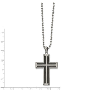 Stainless Steel Black Plated Polished Laser Cut Cross Necklace, 22 In
